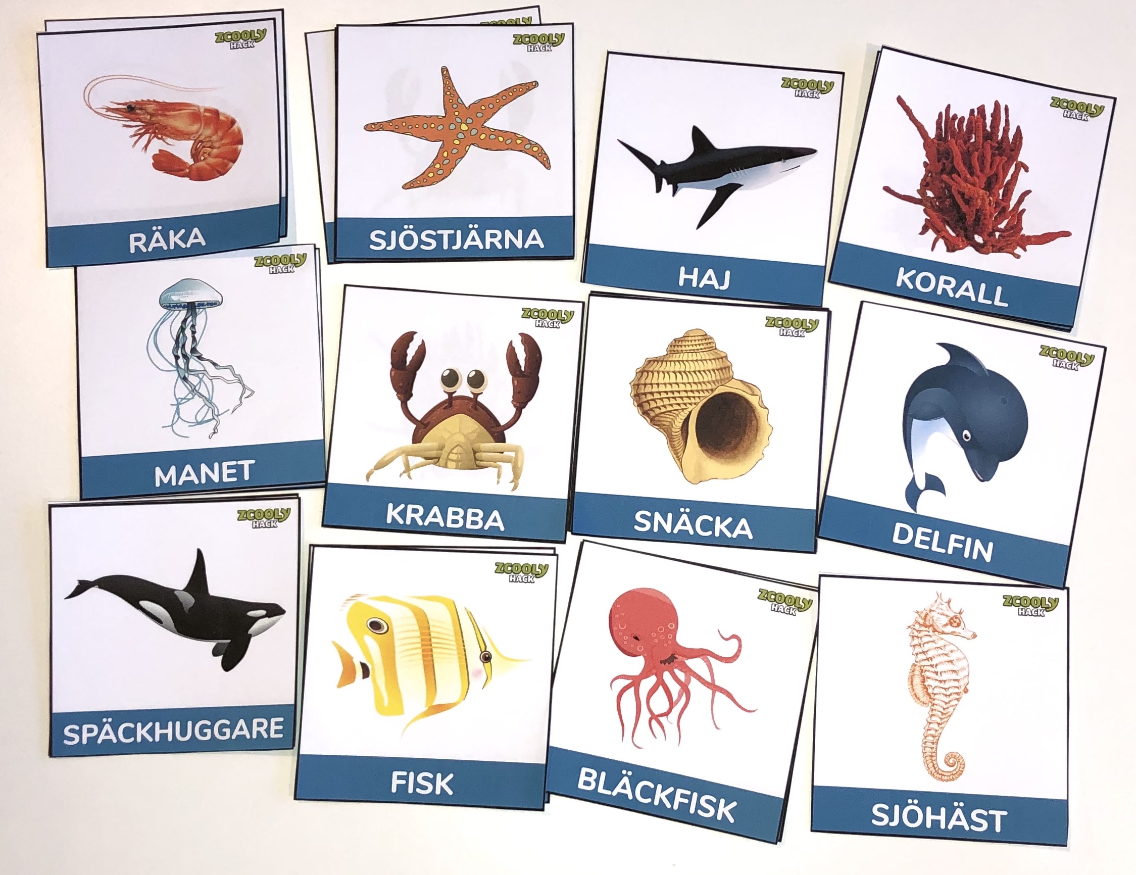 Vi har förberett och skapat några kort med djur från havet, men detta kan ni självklart utveckla.
