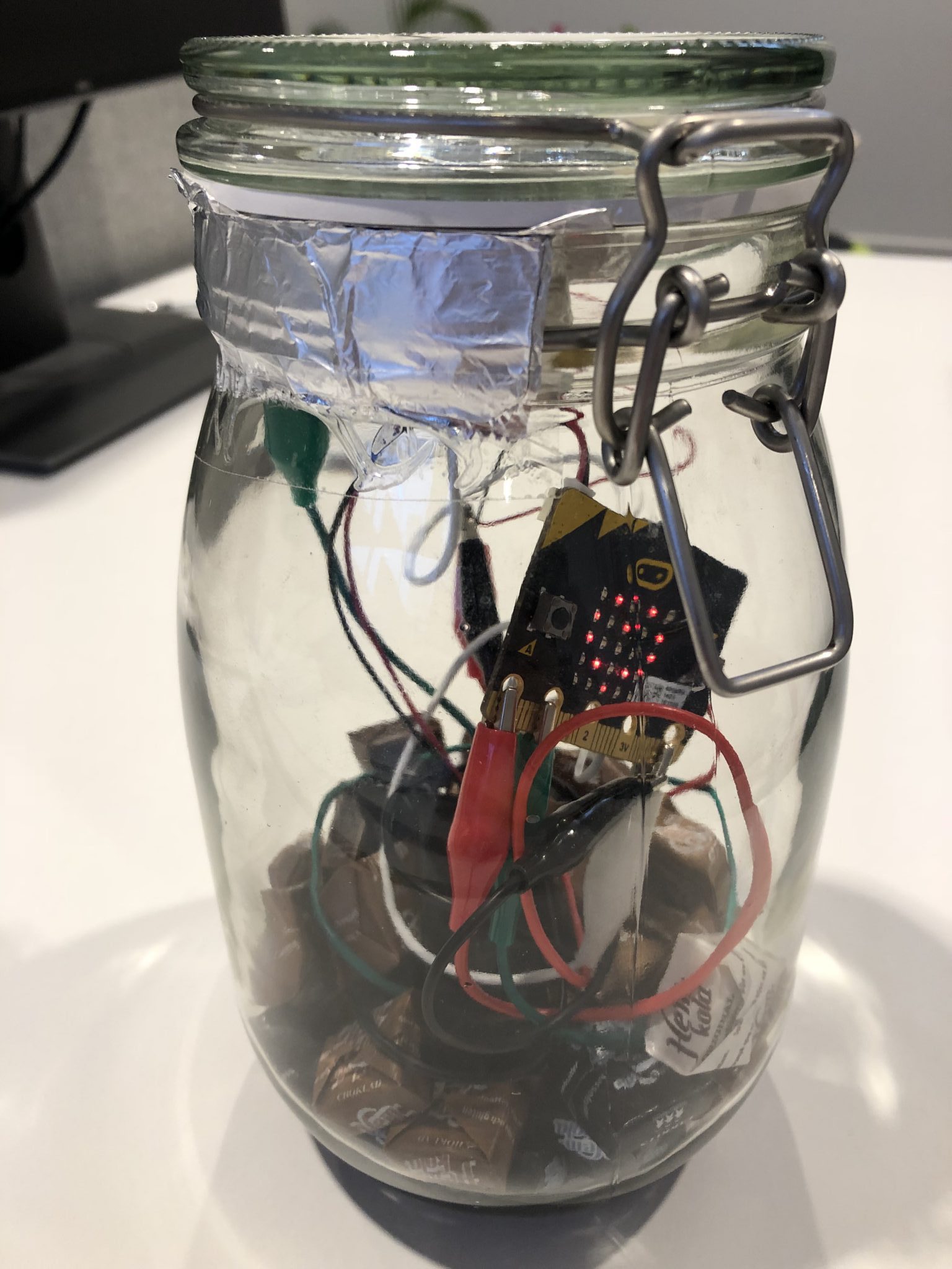 Vill du bygga larm till burken som skall den slutna kretsen fästas på lock, respektive burk så larmet tjuter när burken öppnas. I detta fall tar vi hjälp av folie som är ledande.